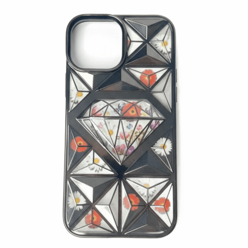 3D flower Diamond cut Iphone 15 Pro Max Black