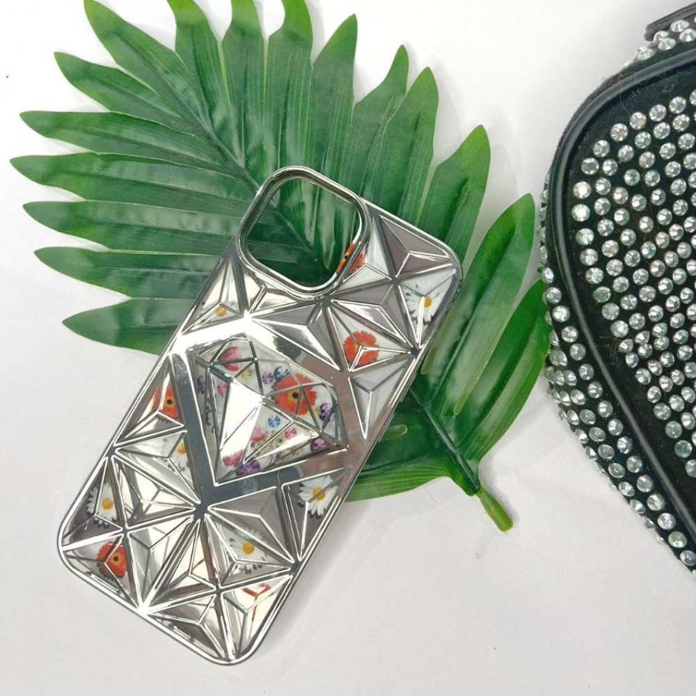3D flower Diamond cut Iphone 15 Pro Max Silver