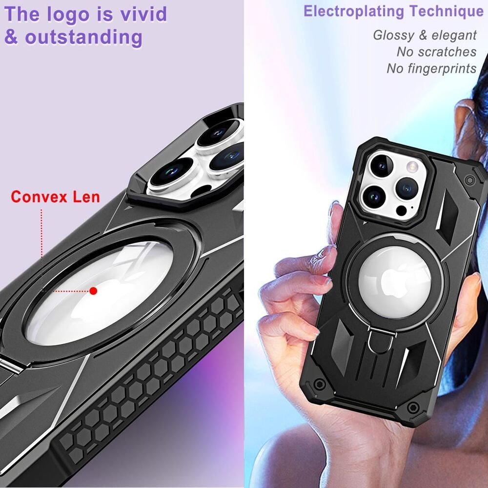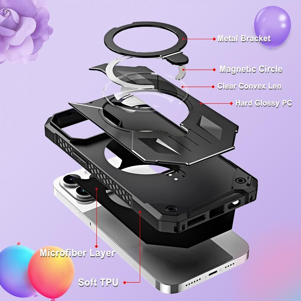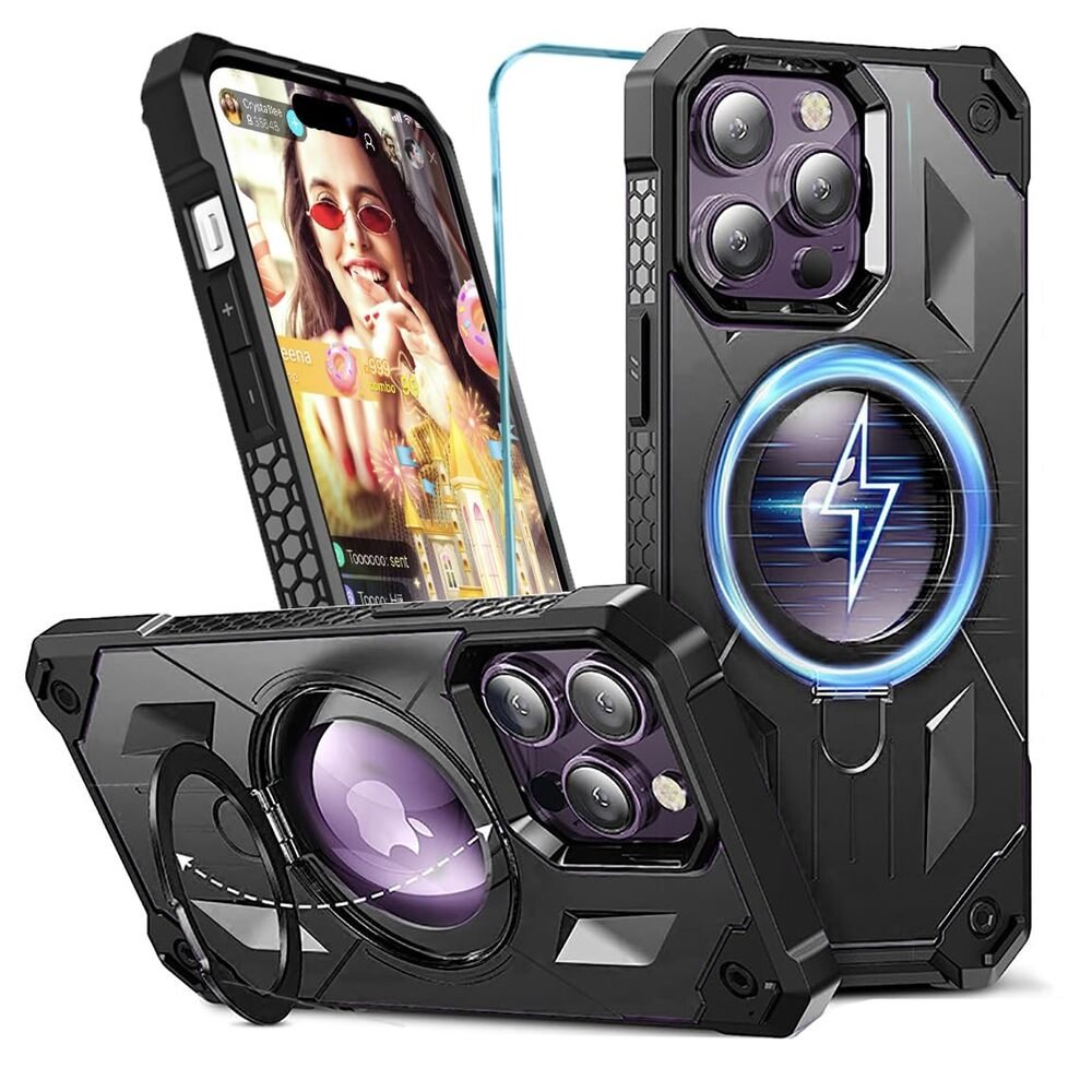 MagSafe Case Invisible Foldable Magnetic Ring Stand, Glossy Dual Layer Protective Bumper, iPhone 14 Case Cover, with 1 Screen Protector(Black) iPhone 14 Case Powerful Magnetic Suction Stand Phone Case,Heavy Duty Full Body Shockproof Protective Phone Cases for Man/Women Girls 6.1 Inch-Black